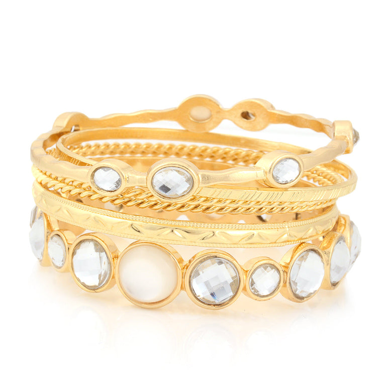 Gold-Tone Metal White Crystal Set Of 6 Bangles