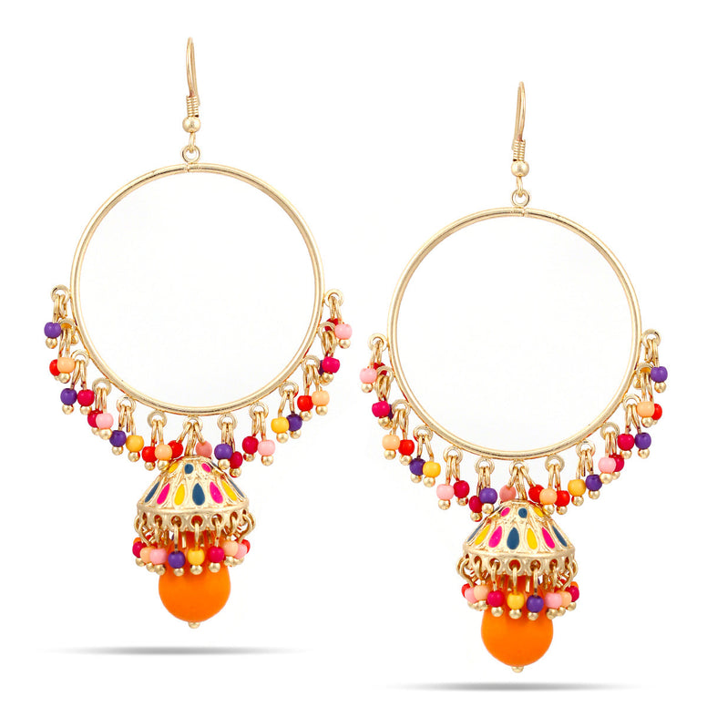 Gold-Tone Metal Multicolor Beads Orange Teardrop Earrings