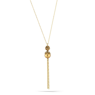 Gold-Tone Metal Chain Gold Pearl And Orange Crystal Pearl Pave Ball Tasselnecklace