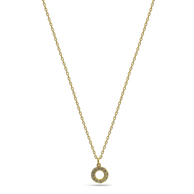 Delicate gold-plated necklace featuring a sparkling small circle crystal pendant. Adjustable 18"+3" chain makes it perfect for layering or everyday wear.
