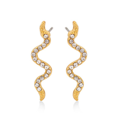 Gold-Tone Snake Metal Crystal Stud Earrings