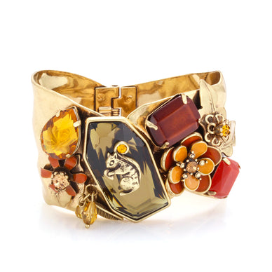Gold-Tone Metal Squirrel Orange And Crystal Flower Hinged Bracelet