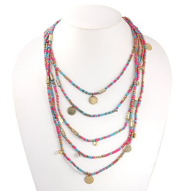 Gold-Tone Metal Gold Turquoise And Pink Beads Adjustable Lobster Claw Closure Layered Necklaces