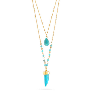 Gold-Tone Metal Turquoise Layered Adjustable Lobster Claw Closure Necklaces