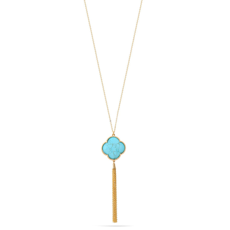 Gold Turquoise Pendant Adjustable Length Chain Tassel Necklace