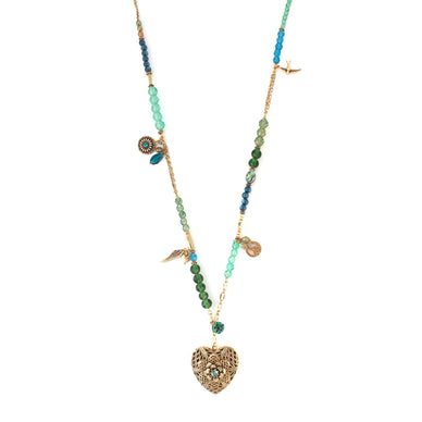Gold-Tone Metal Heart Green Crystal Charm Necklace