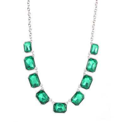 Silver-Oxide Tone Green Crystals Necklae