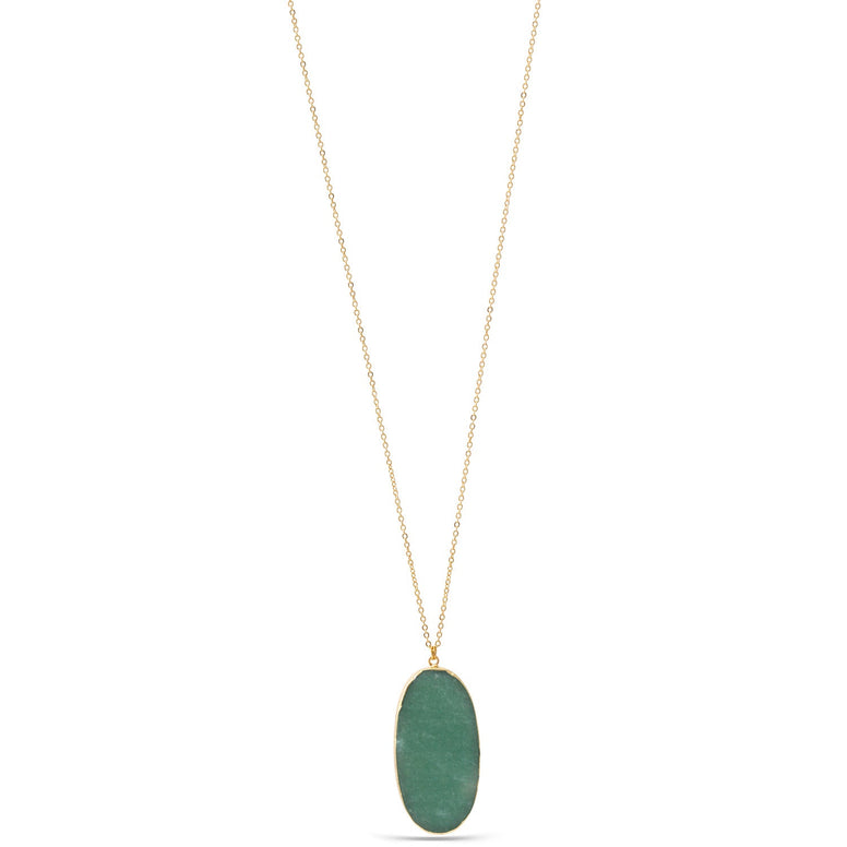 Green Natural Agate Stone Oval Pendant Adjustable length Chain Necklace