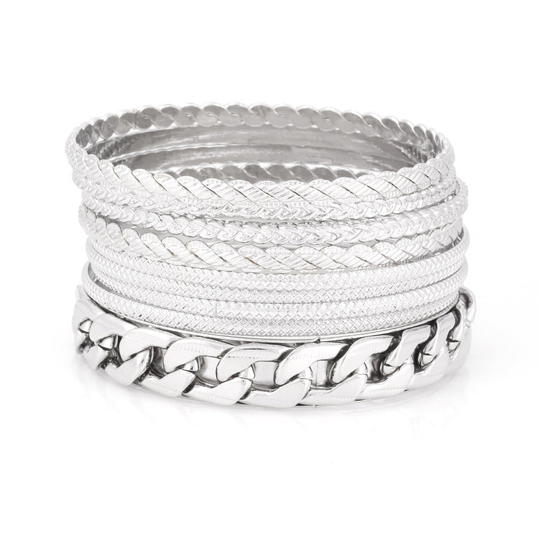Silver-Tone Set Of 9 Bangles