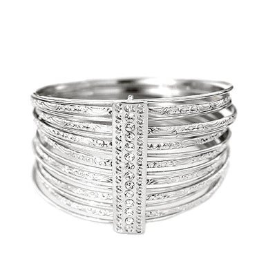 [Plus Size] Luxurious Design Silver Bangles With Rhinestone Set Of 15Pcs