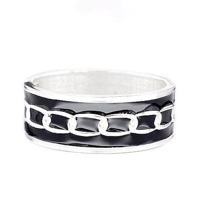 Sa-Hb 2720X Silver/Black Hb2720 Silver Chain Design Black Enamel Hinged Bracelet