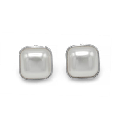 Rhodium Cream Square Pearl Clip on Earrings Their captivating design and luminous pearls will make any ensemble stand out, all in the comfort and convenience of clip on earrings.