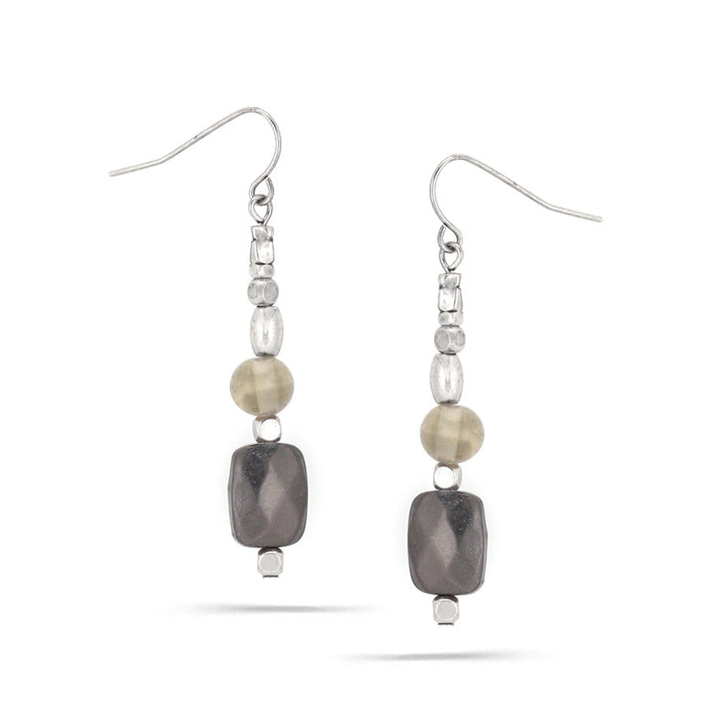 Rhodium-Tone Metal Hematite Drop Earrings
