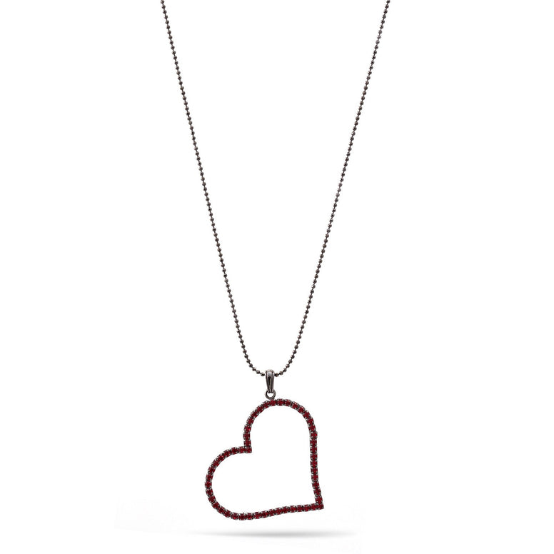 Hematite Red Crystal Heart Pendant Adjustable Length Chain Necklace