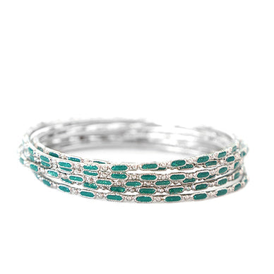 Blue Enamel Silver Bangles Set Of 6Pcs