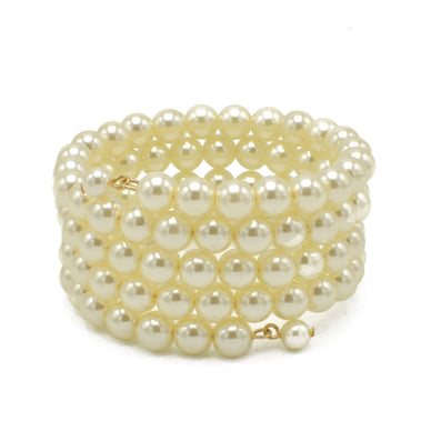 GOLD CREAM PEARL SPIRAL MEMORY WIRE FOUR ROW ADJUSTABLE BRACELET #HNB89394