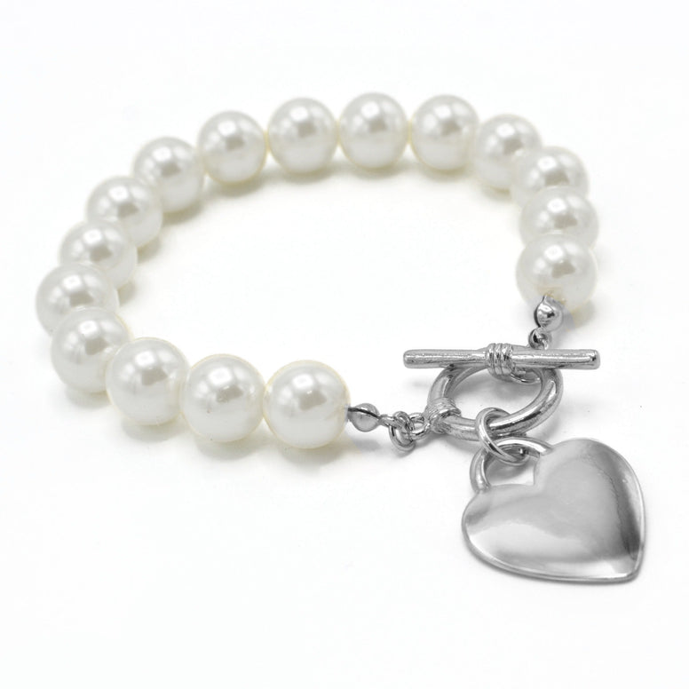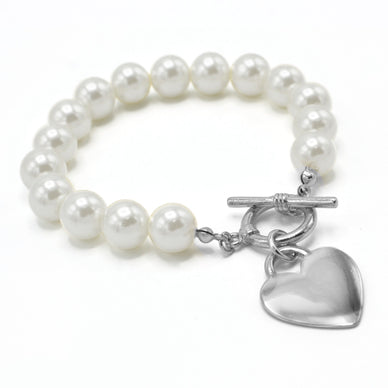 CREAM PEARL SILVER HEART CHARM BRACELET # HNB90103RDCM