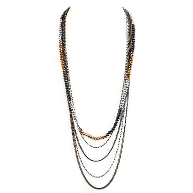 Hnn 92359 Cop/Sil/Hem Approx. Length: 30-33" Hnn92359 Copper And Silver Mixed Bead Five-Strand Long Necklace