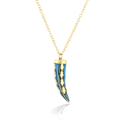 Gold-Tone Blue Horn tooth Pendant Long Necklace