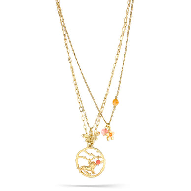 Gold-Tone Metal Lion Flower And Bee Charms Layered Necklace