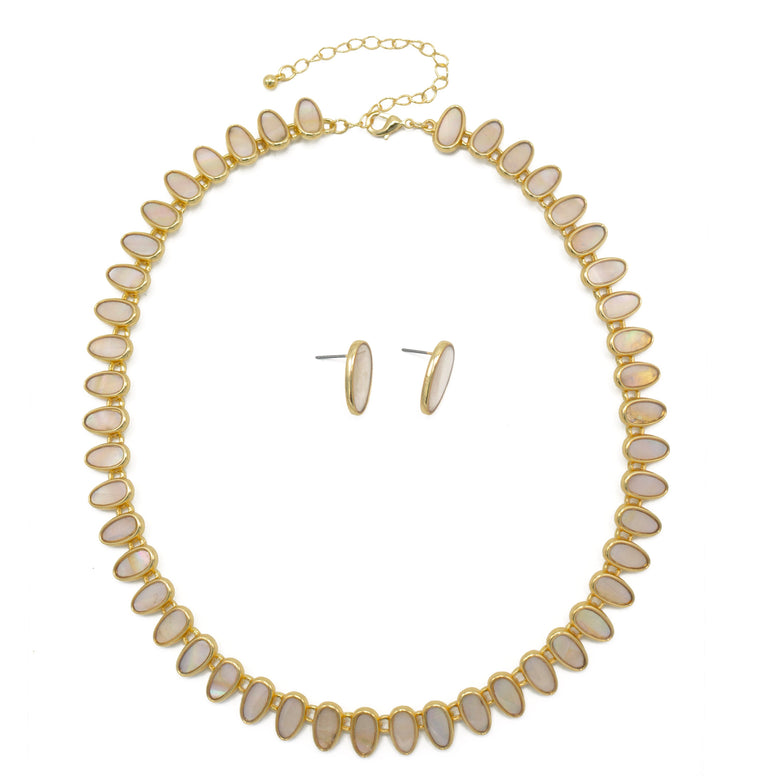 MOTHER OF PEARL GOLD NECKLACE AND EARRINGS SET