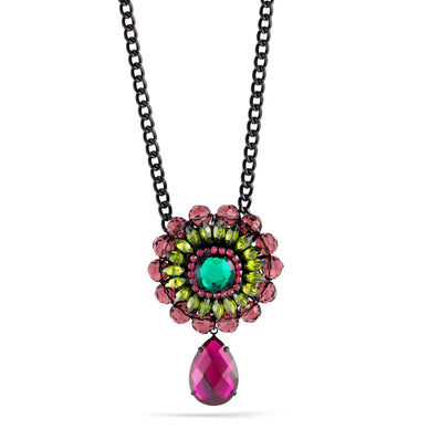 Black-Tone Metal Multi Color Faceted Crystal Tear drop necklace 256MT1301