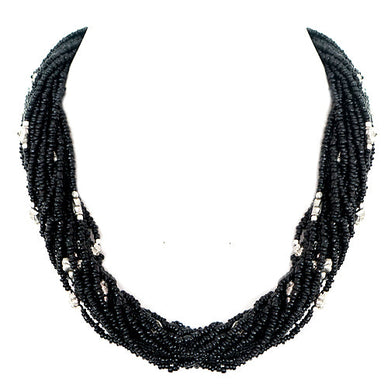 Black Seed Beaded With Silver Metal Bead Necklace