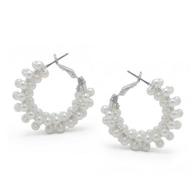 These elegant Rhodium white Pearl Wrapped Hoop Earrings add a touch of sophistication to any outfit. Made of high-quality materials, they feature a unique wrapped design that showcases the stunning pearl accents. The perfect accessory for any occasion, these earrings are sure to make a statement.