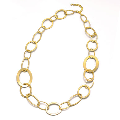 This Gold Large Link Long Chain Necklace features a sleek design composed of intricate gold links. Its beautiful craftsmanship and eye-catching design make it a perfect accessory for any outfit. The glossy golden finish completes the timeless piece, making it a must-have for any jewelry collection.