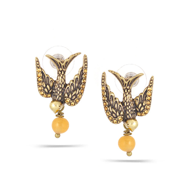 Gold-Tone Metal Orange Crystal Bird Earrings