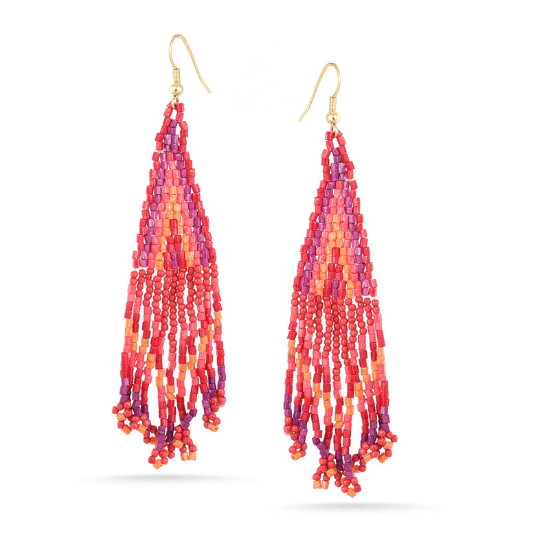 Gold-Tone Metal Pink Coral And Seed Bead Drop Earrings