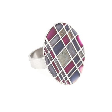 Silver-Tone Metal Resin Ring Adjustable To Fit All Sizes