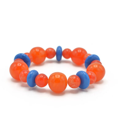 Orange & Blue Color Resin Beads Stretch Bracelet #FWNK-2202-112-BRC