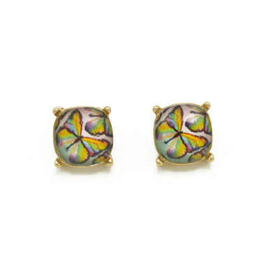 GOLD/MULTI BUTTERFLY BIG SQUARE STUD EARRING # HNE90740MUL
