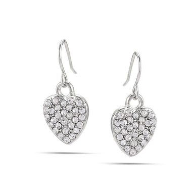 Tazza-Rhodium-Tone Metal Crystal Heart Earrings