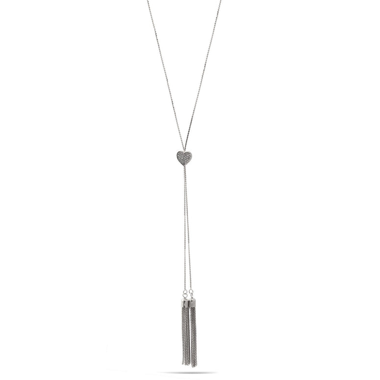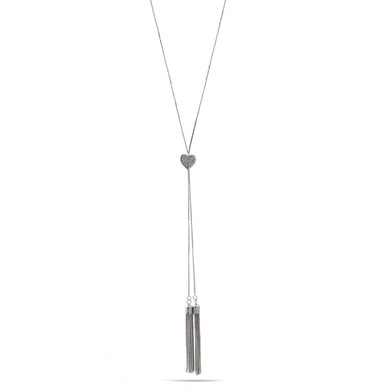 Rhodium Crystal Heart Pendant With Tassel Necklace