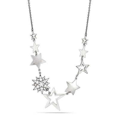 Rhodium-Tone Metal Star White Crystal Necklace