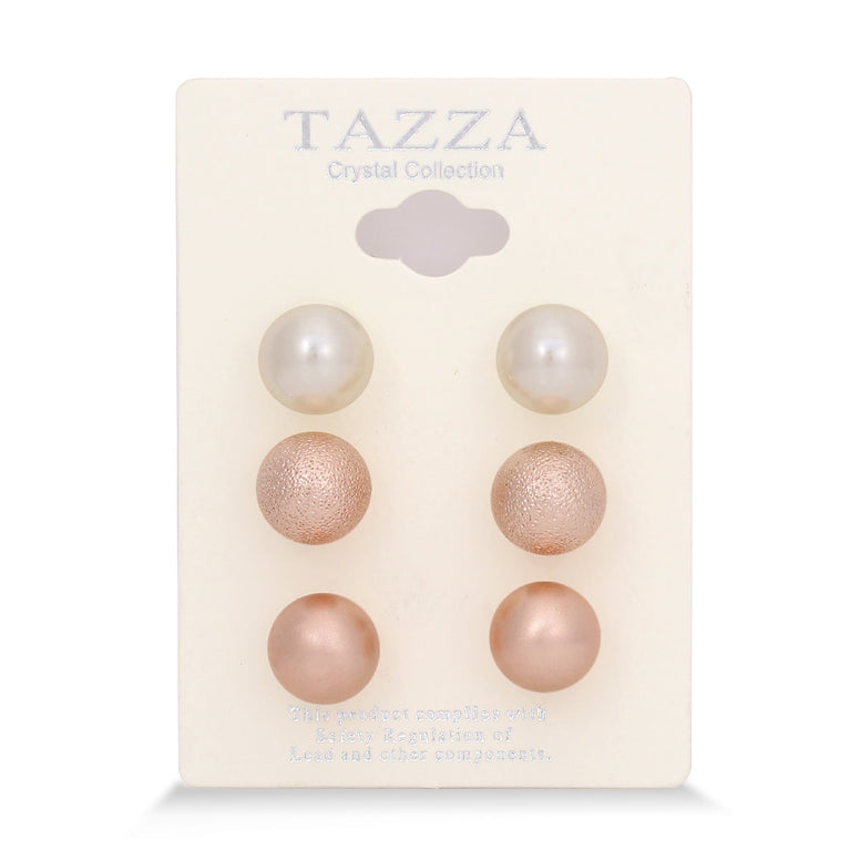 Rose Gold-Tone Metal And Cream Pearl Set Of 3 Stud Earrings