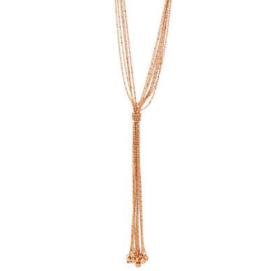 This Rose Gold-Tone Multi Layered Tassel Necklace features a chic metal bar and ball chain design. With its elegant rose gold-tone finish, it adds a touch of sophistication to any outfit. The multi layered tassel detail makes for a stylish statement piece. Perfect for any fashion-forward individual looking to elevate their wardrobe.