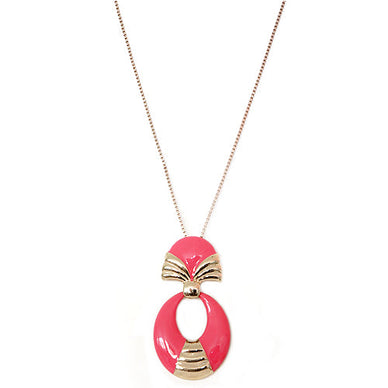 Fuchsia Enamel Oval Shape Gold Long Necklace
