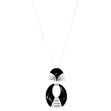 Black Enamel Oval Shape Silver Long Necklace