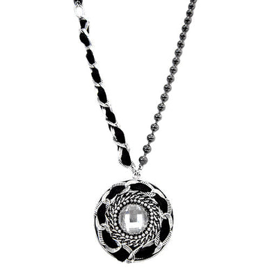 Clear Rhinestone Accent With Silver Chain And Black Suede Mixed Long Necklace