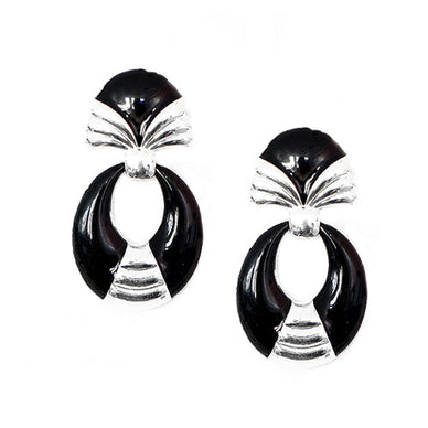 Black Enamel Oval Shape Silver Stud Earrings