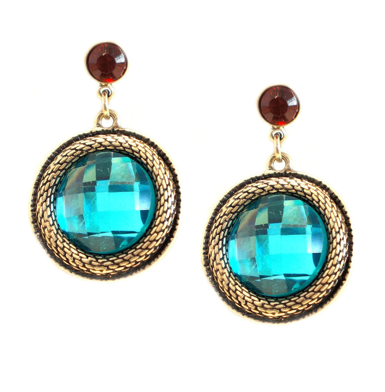 Shinning Gold Turquoise Round Earring
