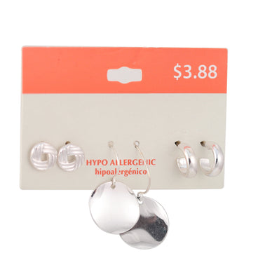 Silver-Tone Metal Set Of 3 Earrings