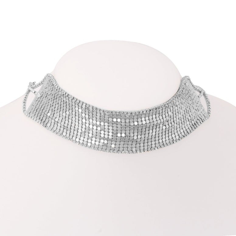 Silver-Tone Metal 1.5"Inches Thick Crystal Adjustable Lobster Claw Closure Necklaces
