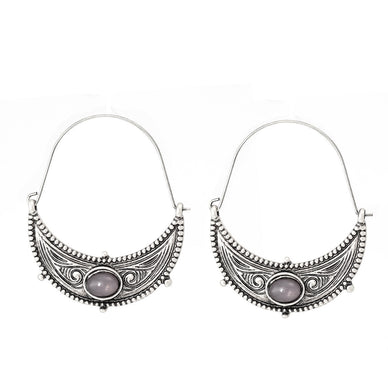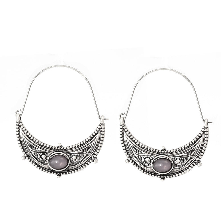 Silver-Tone Metal And Gray Stone Hoop Earrings