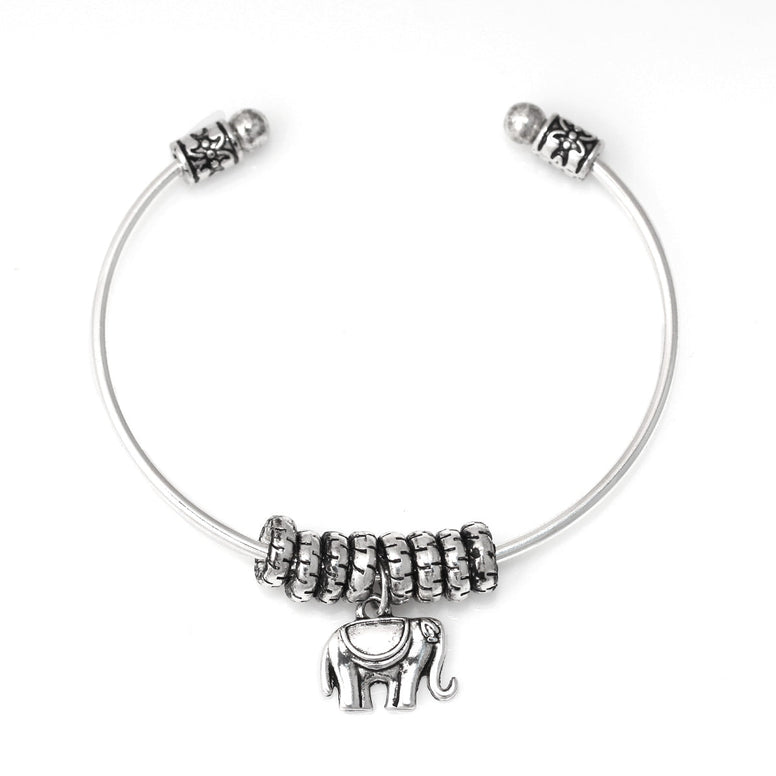 Silver Beads Elephant Charm Cuff Bracelet