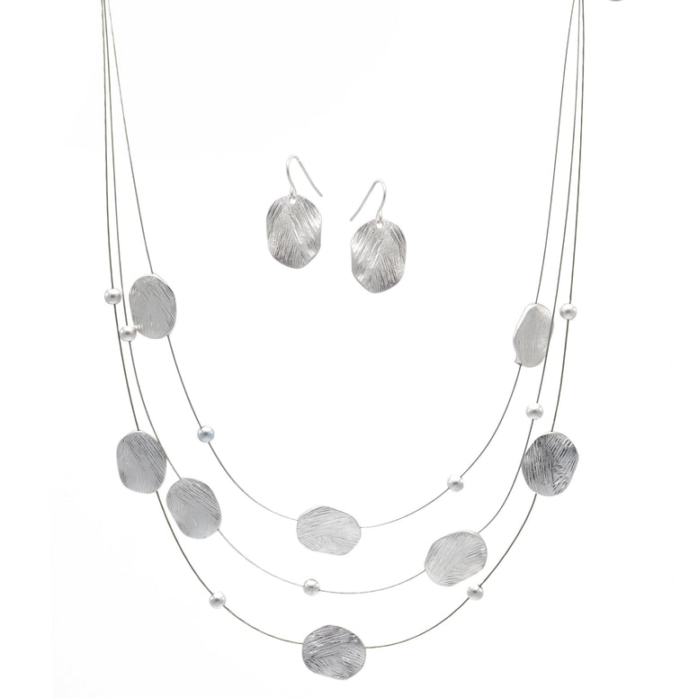 Crafted with precision, this Silver Brushed Illusion Necklace and Earrings Set is the epitome of elegance. The silver brushed finish gives a stunning illusion effect, making it a versatile addition to any outfit. Produced with high-quality materials, this set is sure to elevate your entire look.