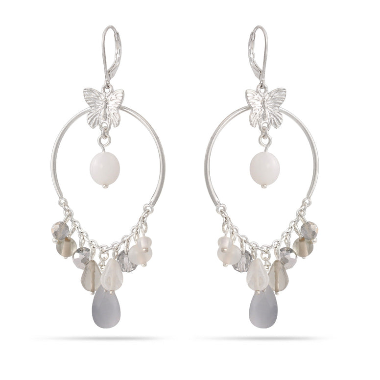 Silver-Tone Metal Butterfly And Beads Drop Earrings